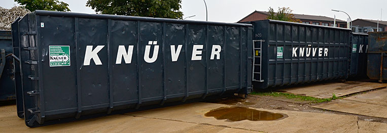 Wir verfügen über einen umfangreichen Containerstamm von mehr als 700 UVV-geprüften Abroll- und Absetzcontainer. Diese sind für die unterschiedlichen Bedürfnisse zum Sammeln, Sortieren und Transportieren von Abfällen geeignet. Die Stärke von Knüver Recycling ist dabei die flexible Reaktion auf die Anforderungen unserer Kunden. Ob Schrott, Metalle, Bauschutt, Grünabfälle, Boden, Folien, Pappe oder auch Gefahrgut, Knüver Recycling hält für jede Anforderung den passenden Container sowie Spezialbehälter in den Größen 1 bis 35 m³ bereit.