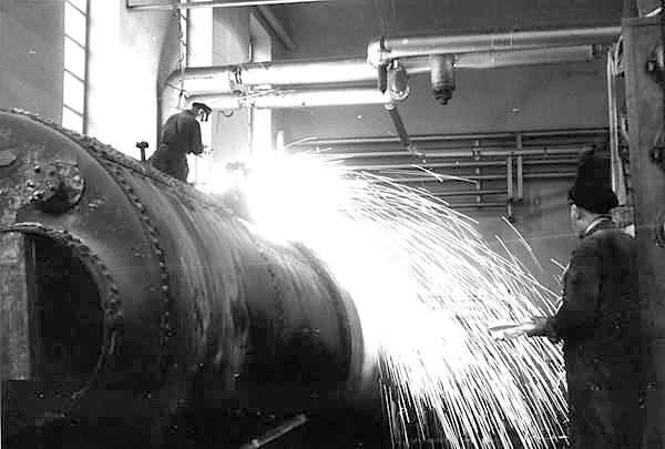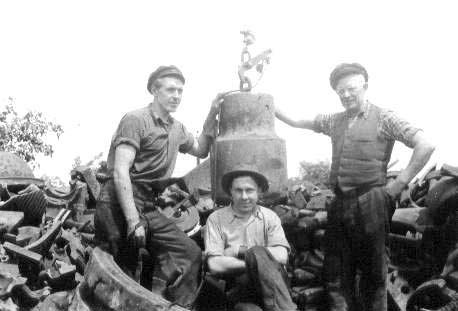 Nach Kriegsende galt es Zerstörungen zu beseitigen, Brücken zu bergen und Dampfmaschinen zu zerlegen. Die ersten Jahre waren hart und es mußte alles in Handarbeit getan werden. Doch dann ergatterte man den ersten Opel Blitz, der mit viel "Geduld und Spucke" fahrtüchtig gemacht wurde. Die HEINRICH KNÜVER OHG hatte sich so gut entwickelt, daß man mittlerweile sogar über einen eigenen Bahnanschluß sowie bescheidene Verlademaschinen verfügte. Mittlerweile waren Josef und August Knüver, die Nachfolger, mit in die Firma eingetreten und bauten den Kundenstamm kontinuierlich weiter aus. In den 60er Jahren wurde konsequent in den Maschinenpark investiert, Seilbagger und Lastkraftwagen wurden angeschafft.